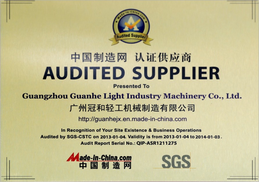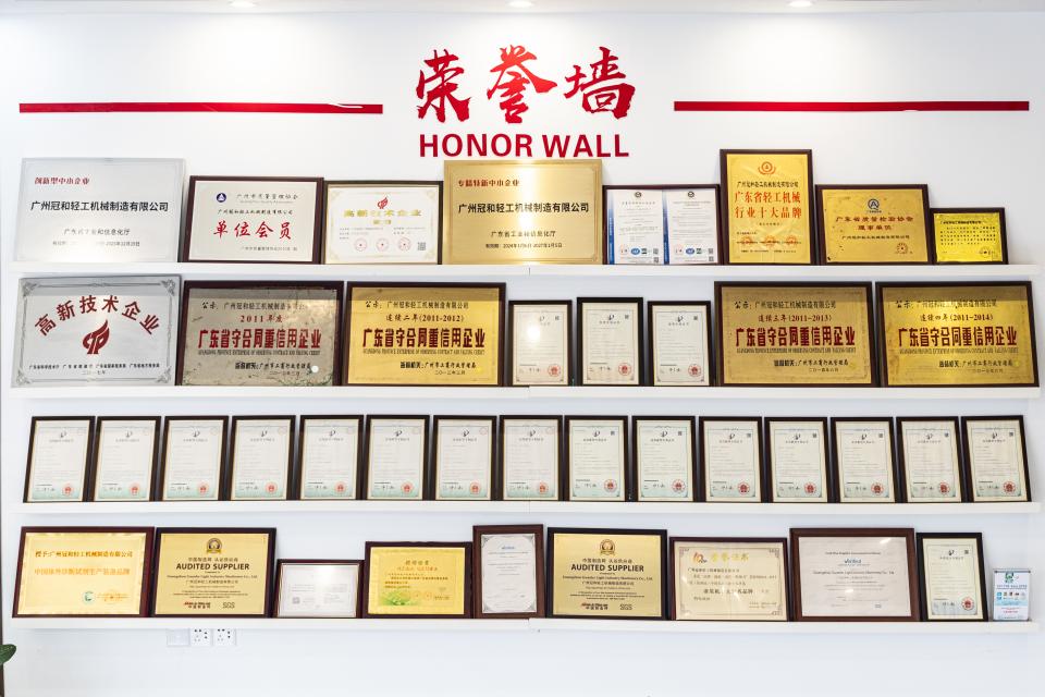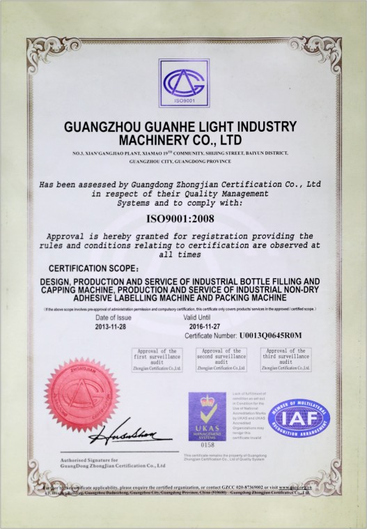 本公司建立了健全的產(chǎn)品生產(chǎn)制造質(zhì)量檢驗(yàn)及質(zhì)量保證體系,通過(guò)了CE認(rèn)證及ISO9001質(zhì)量管理體系認(rèn)證。公司內(nèi)部還實(shí)現(xiàn)了產(chǎn)品的3Q檢測(cè)確認(rèn)。本公司還是廣東省質(zhì)量管理協(xié)會(huì)、廣東省質(zhì)量檢驗(yàn)協(xié)會(huì)的理事會(huì)員。2012年9月,“冠和”榮獲灌裝機(jī)十大知名品牌獎(jiǎng),向社會(huì)各界展示了本公司在行業(yè)內(nèi)的領(lǐng)先地位。公司還榮獲了“守合同重信用企業(yè)”榮譽(yù)證書(shū)。